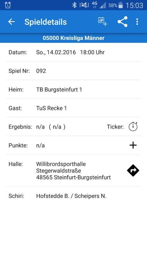 - Details zu einem Spiel (z.B. Datum, Uhrzeit, Halbzeitergebnis, Schiedsrichteransetzung, Hallenanschrift etc.)