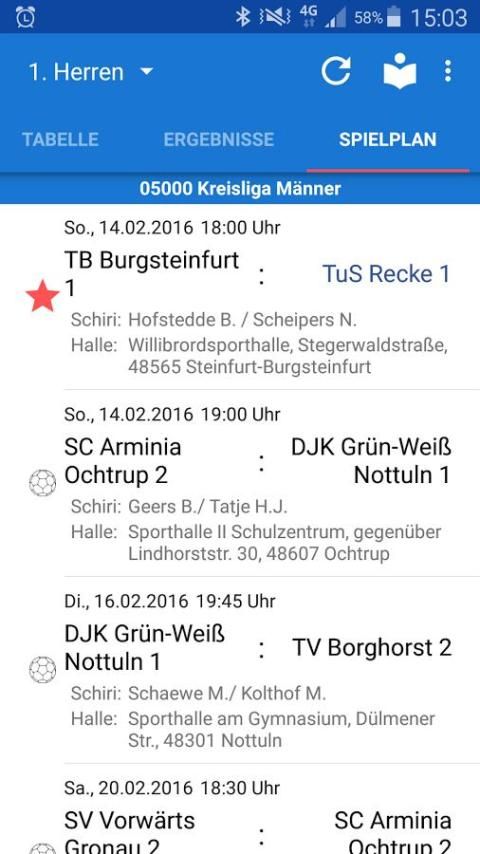 - Heimspielkalender zur Anzeige der nächsten Heimspiele aller TuS Recke Mannschaften