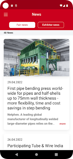 With the Tube Düsseldorf app you are always up to date. Find out about everything to do with the fair and its exhibitors as well as about the latest developments in the world of cable and Tube. Exclusive news on our business news channel keeps you up to date all the time – before, during and after the fair.