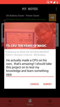 Manage your youtube subscriptions , channels and playlists with ease . Add your favorite youtube channels to your homescreen . Make notes on videos , channels and playlists and never forget those details that pop into your head when you watch a video.