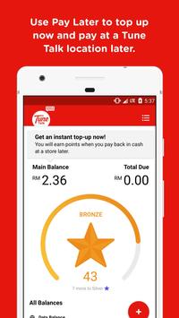 Top up your phone instantly with airtime credit loans from Tune Talk Pay Later App! Paying back is easy - just top up anywhere Tune Talk top ups are sold. Pay back on time to earn stars and level up!