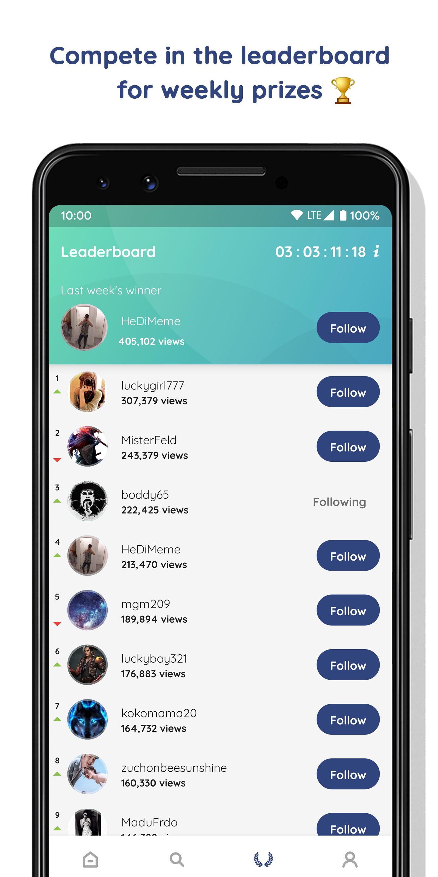 - Rank on the leaderboard to win amazing prizes like shout outs and exclusive merchandise