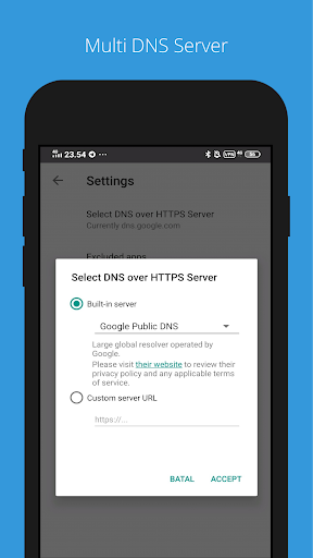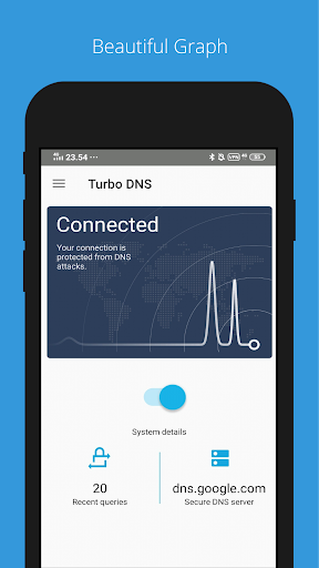 Turbo DNS, A Free VPN Over DNS tool to helps you to protect your online privacy so that you can connect to the Internet securely anytime, anywhere. Turbo DNS using DNS over HTTPS technology without root and works for both WiFi and Mobile Network Data Connection.