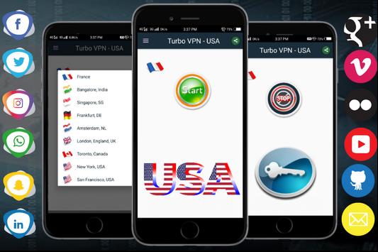 TURBO VPN USA UNLIMITED Application provides unlimited data traffic, unlocks blocked websites and brings basic private privacy. With data encryption, you can keep your information very safe from hackers.