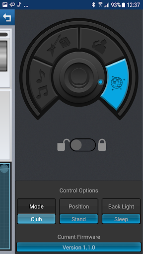 The app does not play any sound. It is for remote control purposes only. Music level indicators are located above the input wheels.
