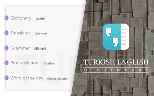 English to Turkish and Turkish to English Dictionary and Translator is one of the best Turkish English Dictionary or Turkish English Translator. Meaning of words are provided with definition, synonyms and antonyms. Not only do you get the learn the words with perfection, you can also listen pronunciation of Turkish and English words to read and speak words properly.