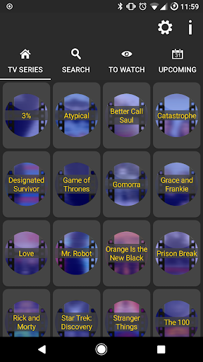 With Tv Series Time you can search your and add to your list your preferred TV Series like Stranger Things, The walking Dead, Breaking Bad and thousands more...