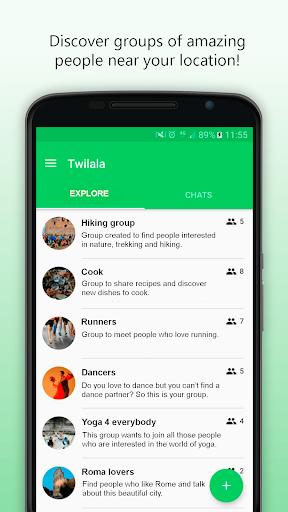 Twilala it’s a free app with which you can join chat groups near your location, make new friends and meet new people whether you are single or not.