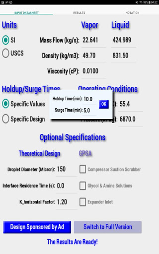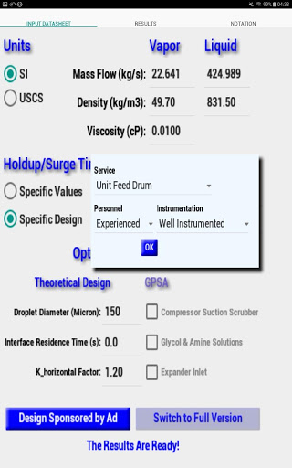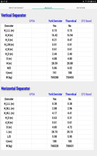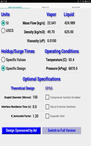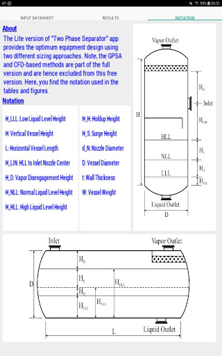 This is the lite version of the equipment sizing app and provides the optimum two-phase separator design for various process conditions. Two different approaches, i.e. York Demister and Theoretical, are included, and their produced results can be compared against each other. Please refer to http://salvasolution.com for background information and technical support.