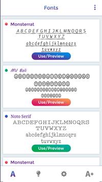 First screen to display the list of option which you want to choose for sample font style.