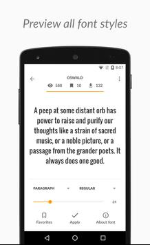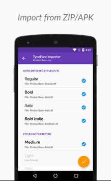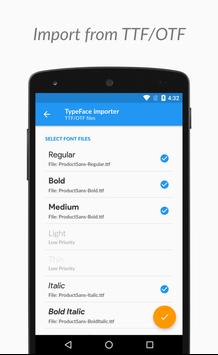 With TypeFace all Google Web Fonts are just a click away for use with Cyanogen Theme Engine or Substratum! Generate font themes on the fly by downloading fonts available on Google Fonts (http://fonts.google.com). For the power user, TypeFace also provides a premium/paid option for creating font themes by importing fonts from archives (ZIP/APK) or font files (TTF/OTF).