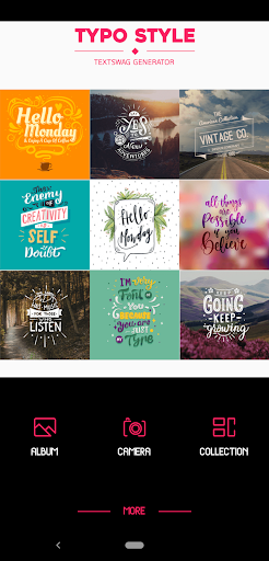 Typo Style - TextSwag Generator are provided a beautifully editing in this app. On the other hand creative typography picture and typographical art are also collected in this Typo app.