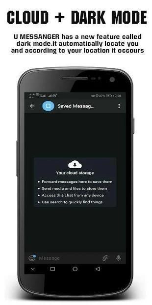 2) Cloud Messaging - tired of deleting messages? And sometimes you have deleted you very important messages which you don’t want to.in u messenger you can save your messages on cloud and you can view that whenever you want.