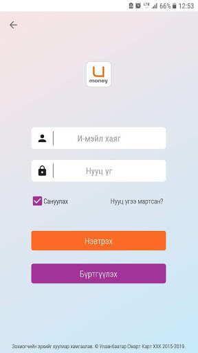 The user who has a register at www.u-money.mn can log in directly with the registered information and in case of not registering, you can register through this application.