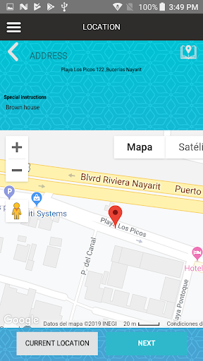 Identify your location. Important: your address will not be saved. In case you want to book more services, you would need to write again or move about 5 mts radius so google maps can identify your address again. Then Next.