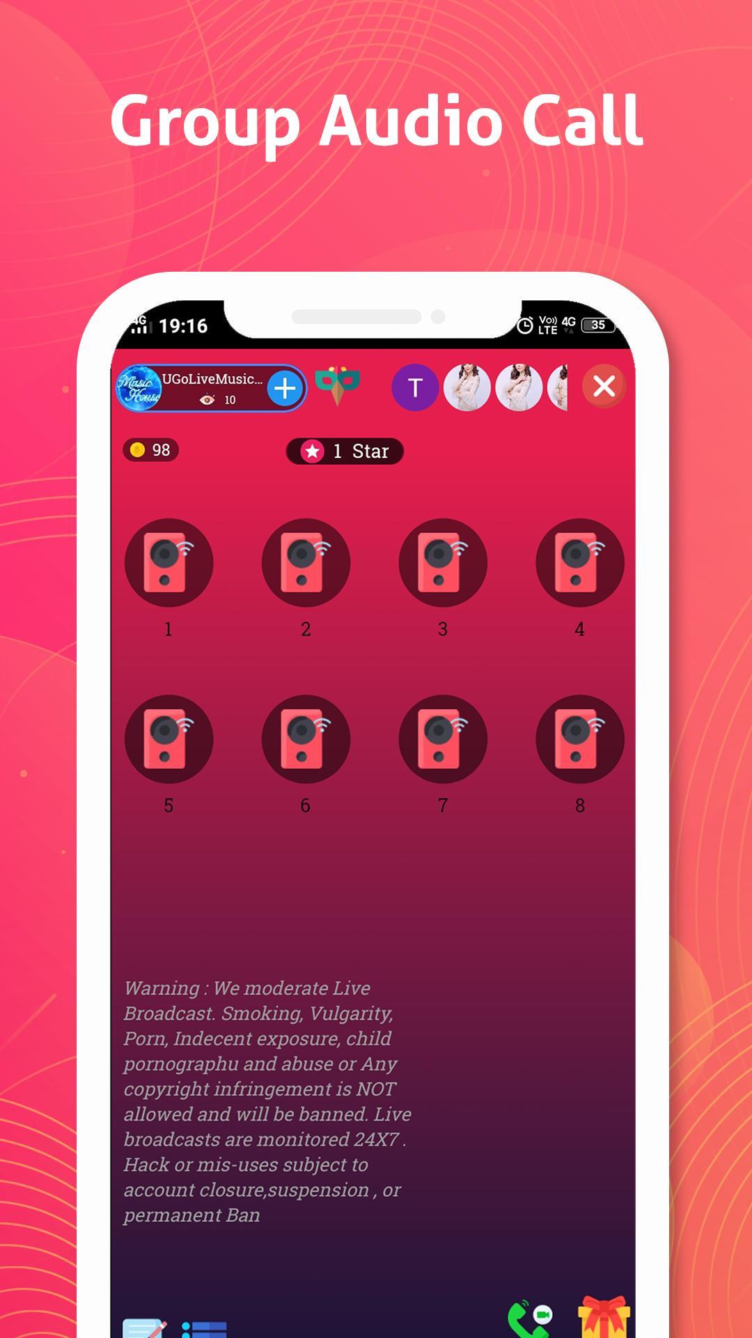 ? and make new buddies around the globe. Follow your favourite personality and chat privately. You can add up to 9 friends to your group audio call to make the call more fun.