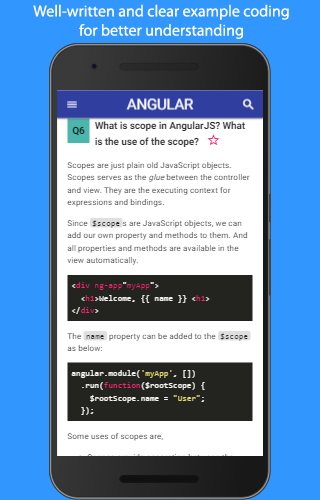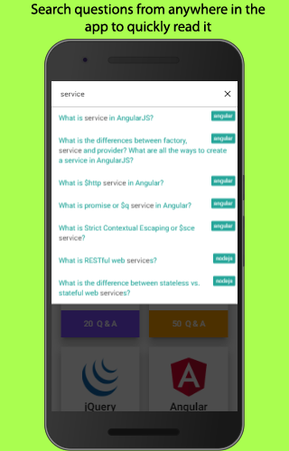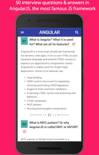 App at https://play.google.com/store/apps/details?id=com.vigowebs.interviewquestions. It contains 600 questions from most wanted topics such as HTML5, CSS3, Jquery, JavaScript, ES6, Bootstrap, Angular JS, TypeScript, Angular, React JS, Node JS, Mongo DB and Adobe Experience Manager - AEM.
