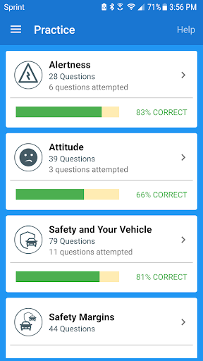 * Practice Mode - Travel through the different categories to test your skill and familiarize yourself with questions directly from the DVSA!