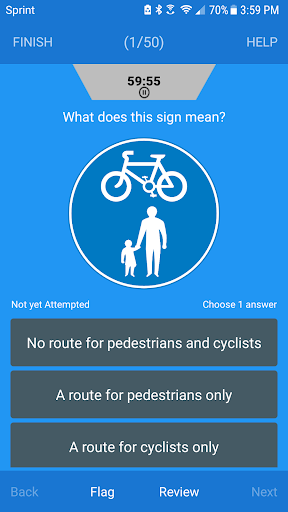 * Mock Test - Fully mimic the actual test--from the timer countdown to the actual scoring system. After taking the 50 question test, we'll tell you how you would have done if this were the actual test. Will you pass or fail?