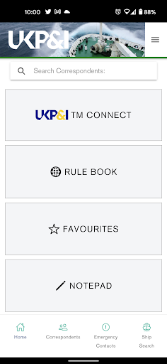 Always connected: Contact details for the UK Club’s entire worldwide correspondents network, available on and off line and always up-to-date. Built in click-to-call, allows users to call directly from the app. Search by Port or Country to find a local correspondent in the Club’s network.