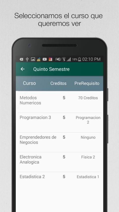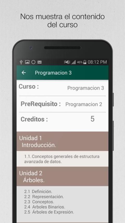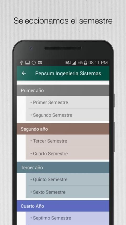 Application containing the curriculum of students of Systems Engineering and content for each course.