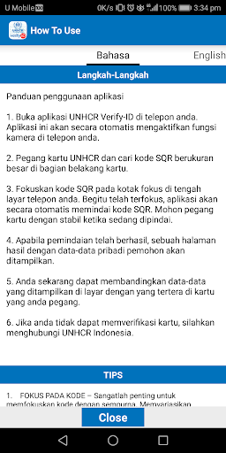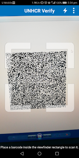 Verifikasi menggunakan aplikasi ini dapat dilakukan dengan memindai kode keamanan QR yang tercetak di kartu pengungsi UNHCR dan dokumen identitas resmi lainnya.
