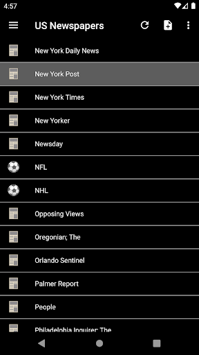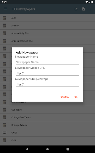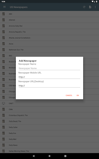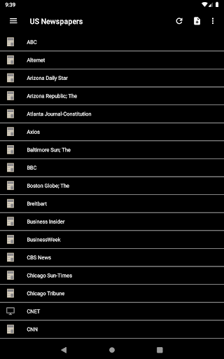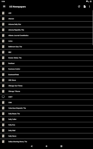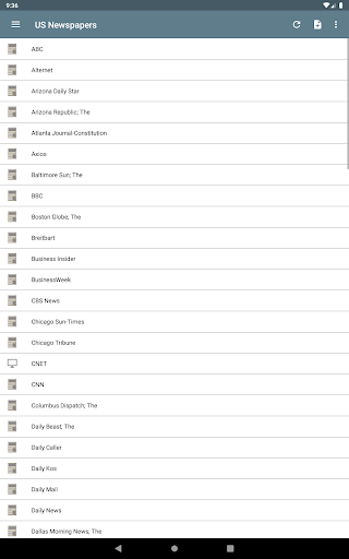 Read any newspaper from the US! National and regional newspapers. You can find news from ABC, Arizona Daily Star, Atlanta Journal-Constitution, Baltimore Sun; The, BBC , BusinessWeek, CBS News, Chicago Sun-Times, Chicago Tribune, CNET, CNN, Daily News, Denver Post, Detroit Free Press, ESPN, Financial Times, Fox News, Fox Sports, Gizmodo, Google News USA, Houston Chronicle, International Business Times, Kotaku, Los Angeles Times, Lifehacker, San Jose Mercury News, Miami Herald, MSNBC, NBA, NBC Sports, Newsday, New Yorker, New York Post, New York Times, New York Daily News, NFL, Orlando Sentinel, People, Pittsburgh Post-Gazette, Reuters, San Diego Union-Tribune, San Francisco Chronicle, Seattle Times, Sports Illustrated, Star Tribune, Tampa Bay Times, Arizona Republic; The, Boston Globe; The, Columbus Dispatch; The, Dallas Morning News; The, Huffington Post; The, Oregonian; The, Philadelphia Inquirer; The, Plain Dealer; The, Star-Ledger; The, Washington Post; The, Wichita Eagle; The, Wired, Times Picayune, USA Today, U-T San Diego, Wall Street Journal, ZDNet, ZNet, Yahoo News...