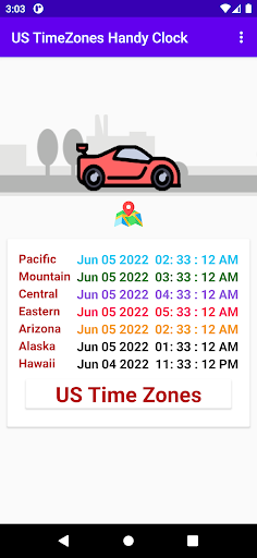 Simplified US Timezone Handy clock with beautiful UI features like car animation and map zooming which shows the different time zones in United states like Pacific, Mountain, Central and Eastern time zones. This app also includes Alaska and Hawaii time zones.
