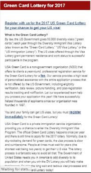 USA Green Card is a private immigration service organization, providing you a chance to enter the Diversity Immigrant Visa Program. The official Green Card Lottery happens once per year and there is still time to apply for the 2017 lottery. Normally, due to sky-rocketing demand for green cards, the visa process is slow and cumbersome. People at times must wait for years (the shortest wait being two years) to get their U.S visa. The lottery process is a fantastic way to avoid all that. The Government of United States needs you in America to add diversity to its population and when you win the DV Lottery you will help make that happen. So skip the long wait and tedious visa processes and apply for the Green Card Lottery today!