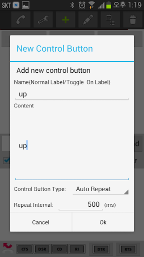 6) Click "add conrol button"(Plus icon) in toolbar, and then input name and content to send