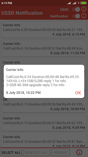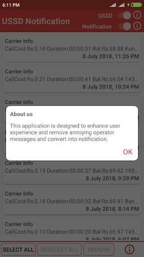 USSD Notification is a simple app which removes the messages sent by your mobile operator, and saves them in App for future reference. Also allow user to convert that message in to notification