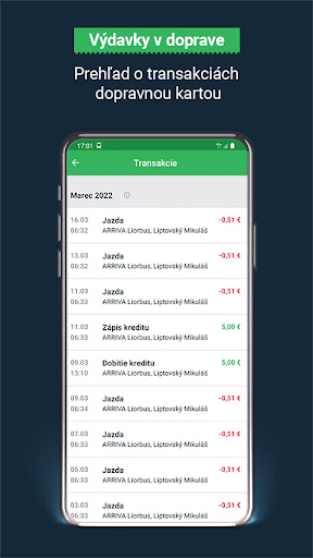 Ubian viene utilizzato per acquistare orari o tram di abbonamento, addebitando credito per una carta di traffico o acquistando una nuova carta di trasporto.Nell'app vedrai anche le transazioni effettuate dalla tua carta di trasporto nei trasporti pubblici.Attualmente è possibile acquistare prodotti in Ubian: compagnia di trasporti Bratislava, compagnia di trasporti di Košice, compagnia di trasporti della città di Martin, compagnia di trasporti di Prešov, compagnia di trasporti di Považská Bystrica, triste Žilina, triste Trenčín, triste Prievidza, triste Dunajská Streda, Skand Skalica, Sad Skalica, Sad Lučenec, Eurobus, Sad Prešov, Sad Poprad, Bus Karpaty, Arriva Michalovce, Arriva Liorbus, Arriva Nové Zámky, Arriva Trnava, Arriva Nitra, Arriva Bratislava.