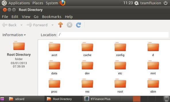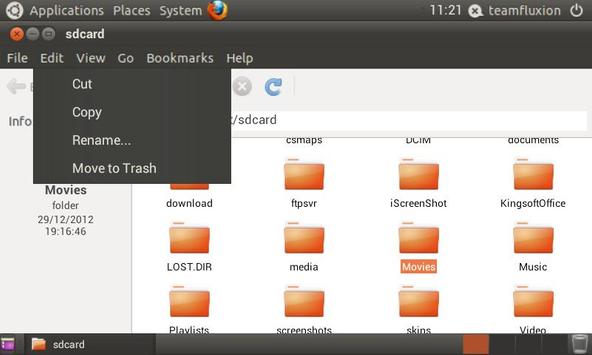Ubuntu Mod is a launcher that imitates the look and feel of Ubuntu (with GNOME) right on your Android device. It lets you explore your file system and open different file formats using default programs as assigned in your device. It also provides the common file system operations like copy, cut, paste, rename and delete.