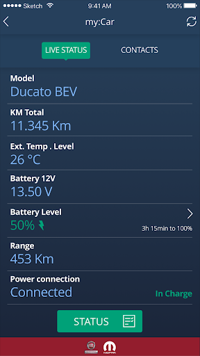 Activating Mopar® Connect services is very simple: complete the first activation step at an FCA Authorized Dealerships, receive an email and follow the link, register your account or log in. Once you have confirmed your vehicle data, you will receive an email when the Mopar® Connect services are active and available on both the Uconnect LIVE app and the DriveUconnect.eu website.
