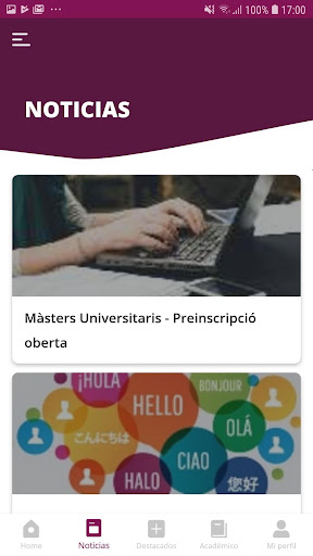 • Calendari universitari: des de l'app podràs accedir al teu calendari acadèmic i conèixer tots els esdeveniments de la Universitat.