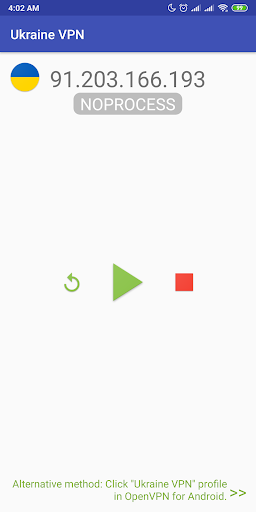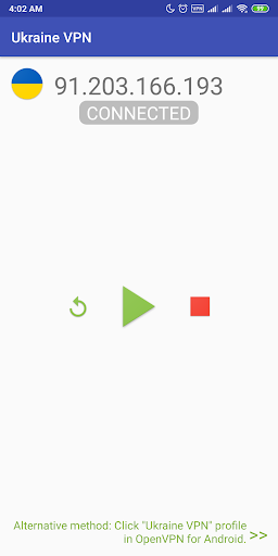 3. Click on "Play" button , the IP address of OpenVPN profile will be save, import and start to connect to the server by pass command to "OpenVPN For Android" app.