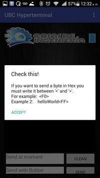 This mode is a simple and friendly interface where you can send and receive data through Bluetooth. You can send data at the same time you are typing it, or you can assemble a package of data to send it later. Also data in hex is available if you write it between the symbols
