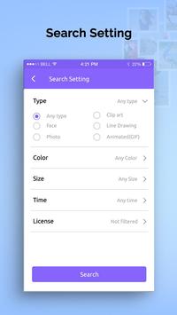 - Search settings provide options to users to set the type, color, size, time and license of the images to be displayed.