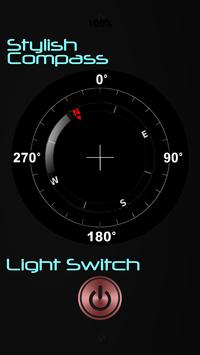 Ultimate Compass App in Black Mode that comes with Light Switch.