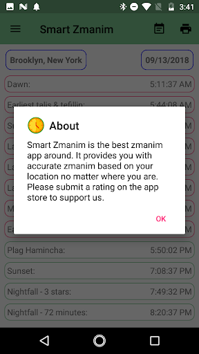 Smart Zmanim combines a butter smooth user interface with advanced zmanim calculations to bring to you the best zmanim application for Android.