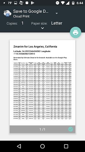 Ability to Print High Quality Zmanim Sheets / Charts for any range of times