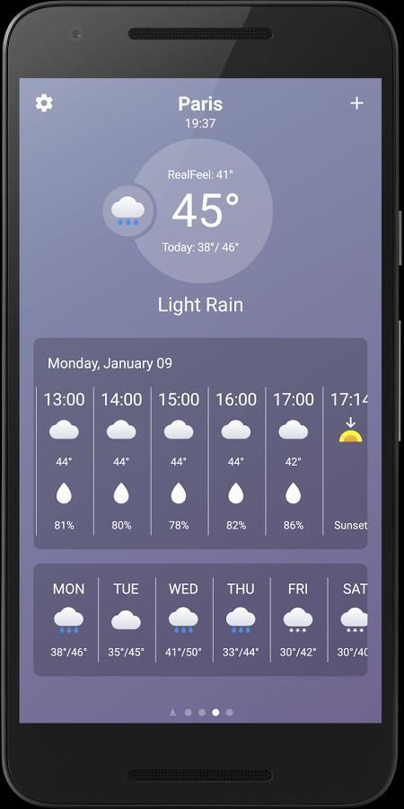 • Detailed Current Conditions: “Real feel”, temperature, humidity;