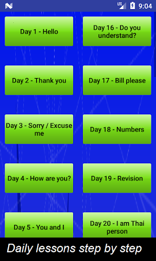 Just like classroom, it contains lessons and exercises for you to do, so that you can easily remember the lessons and test your progress. Step by step lessons course for 30 days to enable you to learn Thai easily and effectively.