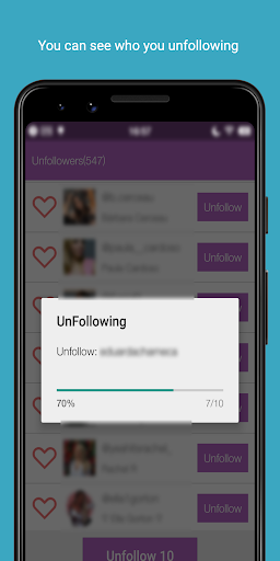 but whom you follow. While tracking non-followers, the app also lets you unfollow these users. You can either unfollow a single user or unfollow multiple users. So, if you are asking yourself - Who unfollowed me on instagram?, just start using this Unfollow Pro to find out who unfollowed you on instagram. This app does not increase your followers. It only tracks users who do not follow you back