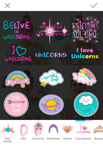 ♥ Add to your photo the unicorn ear stickers or cute eyes stickers in Unicorn Photo Editor!