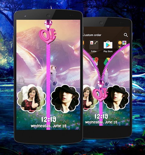 ** You can set your photos on zipper screen. You can convert your pictures in many different shapes like heart, oval, star, pip style, water drop, flower, etc. Set your couple photo or lover photo on zipper screen.