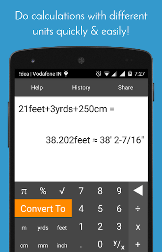 You will be able to use the response from the calculator directly on your measuring tape in the real world. The calculator also allows you to enter in questions in the form of feet inch and inch fraction easily. All of this makes this app the best measurement converter there is on the Play store.