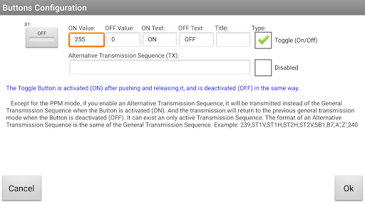 * Using the audio output of the Android device connected to an external transmitter or to a RC simulator.