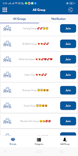 In Our App you can get Groups According to App Category.