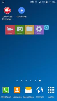 free screen recording for unlimited time, doesn’t have a main interface. Instead it comprises of an overlay of a small box that will includes 5 buttons: for recording, for photos capture, for accessing settings, and accessing data and a button to exit the app. Once you start recording, you will notice an overlay at the right side of your screen indicating that the app is currently recording.
